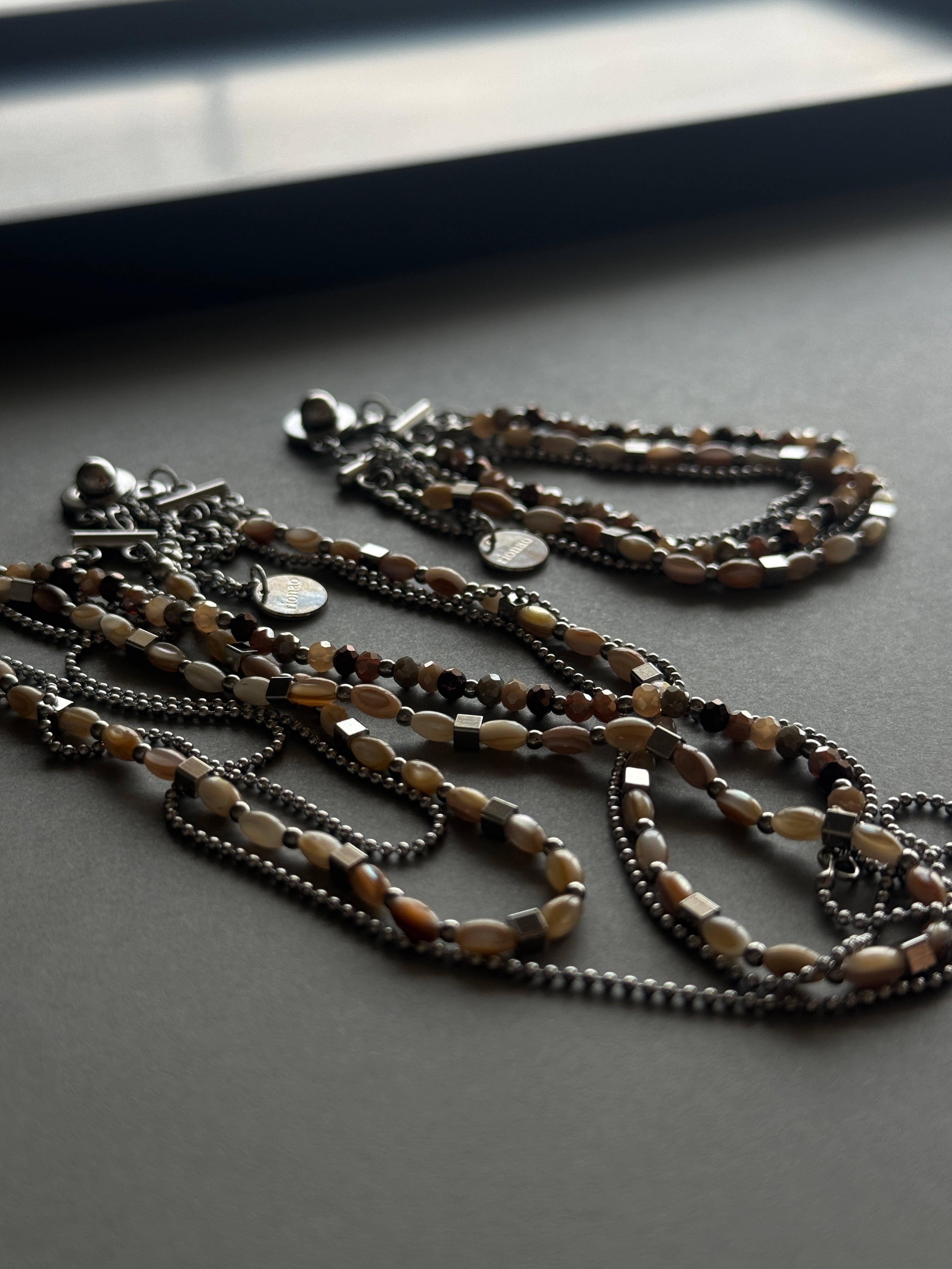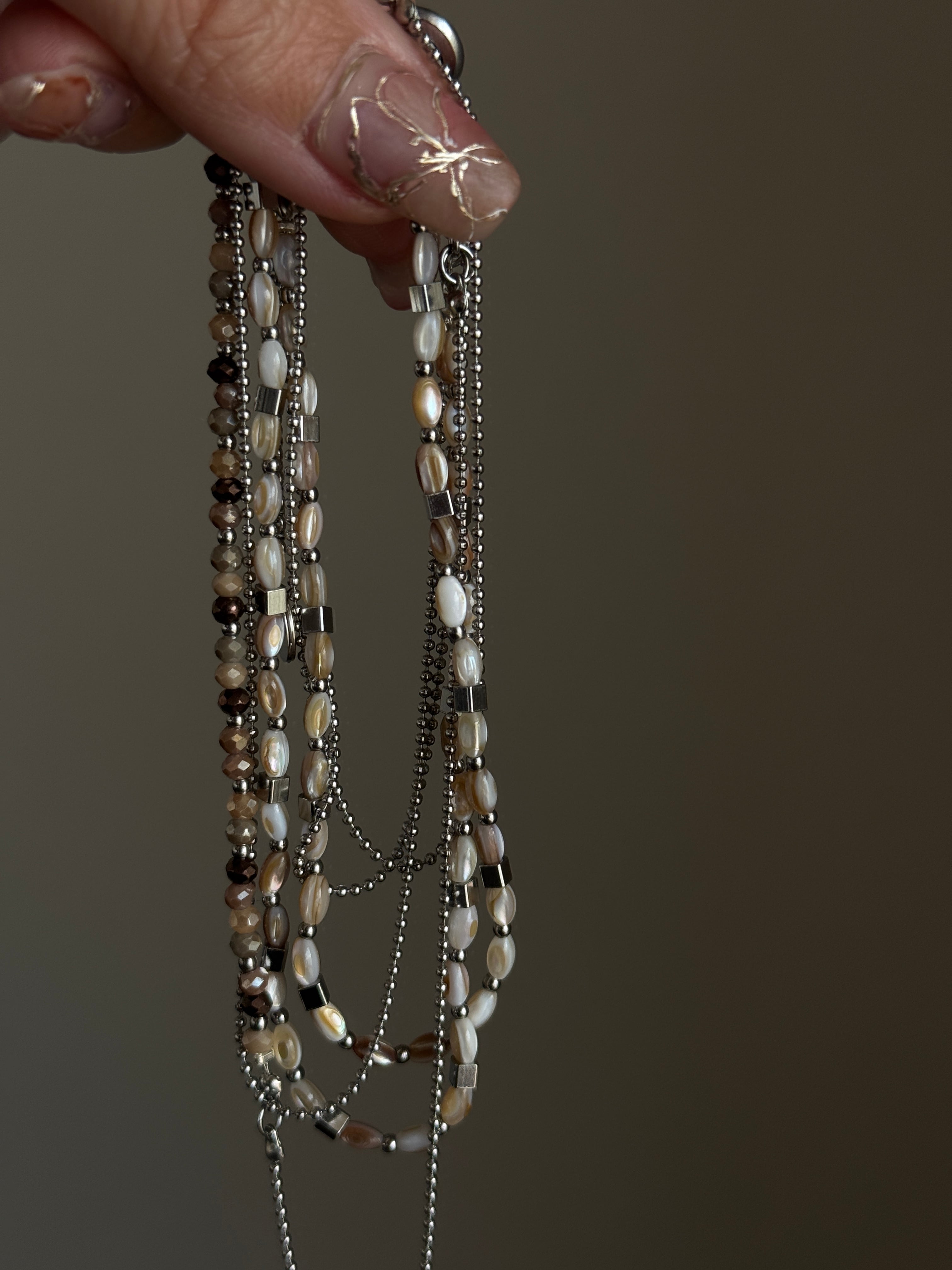 スモーキーなブラウン系ガラスビーズをたっぷりとあしらった、贅沢なアイテムです✴︎